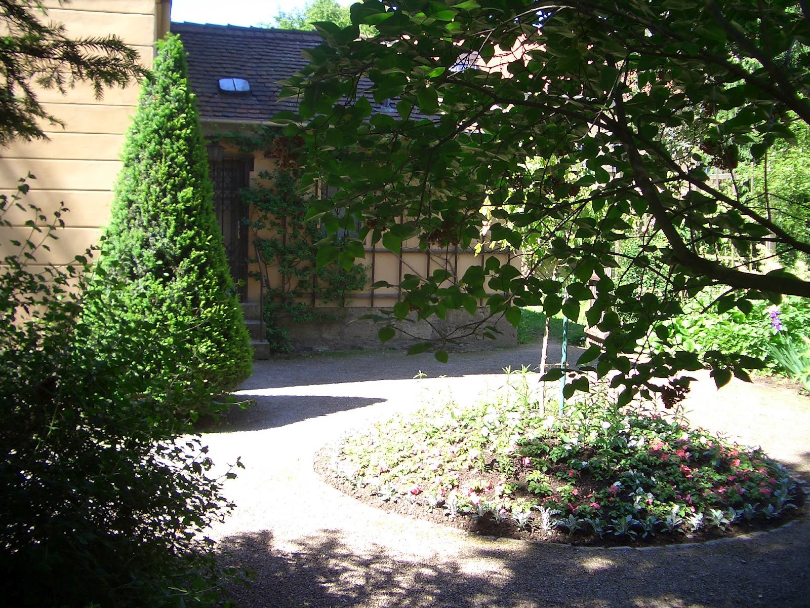 この日は知人夫妻と鉄道で文化の都ワイマールへ。リストやメンデルスゾーンが宿泊していたホテル・エレファント前の広場で昼食をとり、フンメル、シラー、ゲーテのお墓参りをした。一番楽しみにしていたリスト博物館は残念ながら閉館していた。ここは個人の所有物なので、持ち主の気まぐれにしか開館しないそうである。ここを訪れたというリストファンの知人を何人か知っているが、その中で館内を見物できた人の話はまだ聞いたことがない。かつてリストが住んでいたこの住宅は、何度も写真でみたことがあり、この地に来たことをゆっくりかみしめ、残念ではあったが次の機会に思いを託した。運の悪いことに、シュバイツァー博物館も閉まっていたが、小道を歩いていると突然ポーランドの詩人ミケウィッチの胸像が現れるなど、まさしく様々な文化人の痕跡に出会うことのできる、文化の都にふさわしい街だった。