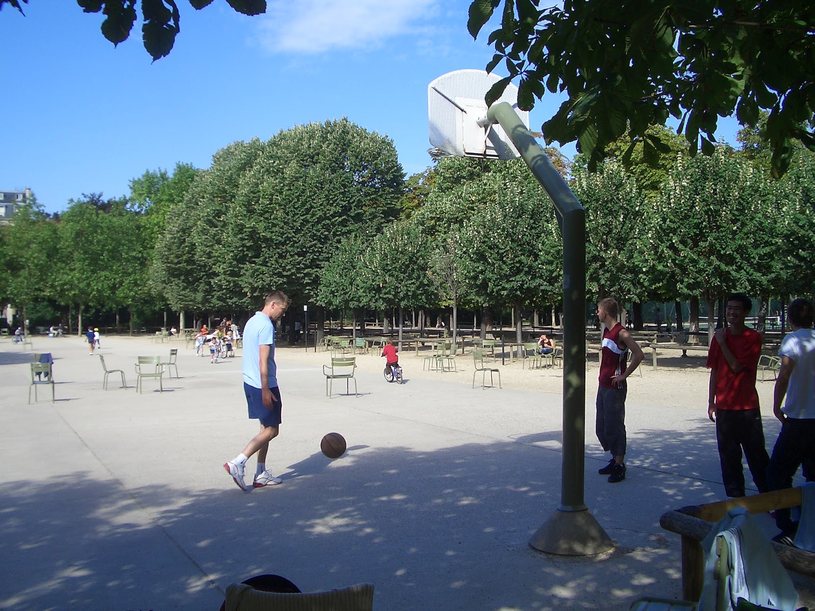 この日、スウェーデン人で長身の親友ゲルブランド君の肘鉄を顔面にくらった。かなり痛かったが、幸い大事には至らず、早朝の運動で心身ともにリフレッシュすることができた。その後頻繁に、ENSの体育館やリュクサンブール公園のコートで、日曜の朝バスケットボールをすることになった。仕事でも机に座っての作業が多く、趣味のピアノでも一人で長時間椅子に座ることの多い私にとって、運動は心身の健康を保つために、かつスポーツを通じて友達の輪を広め、同僚達との絆を強めるために必要不可欠な営みである。(写真は後日リュクサンブール公園にて)