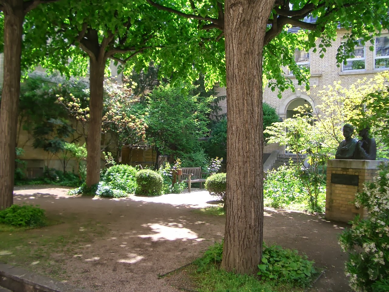 近所のリュクサンブール公園などの豪華な雰囲気とは異なり、このこじんまりとした中庭は、研究が情熱であり芸術であった時代から何一つ変わっていない。