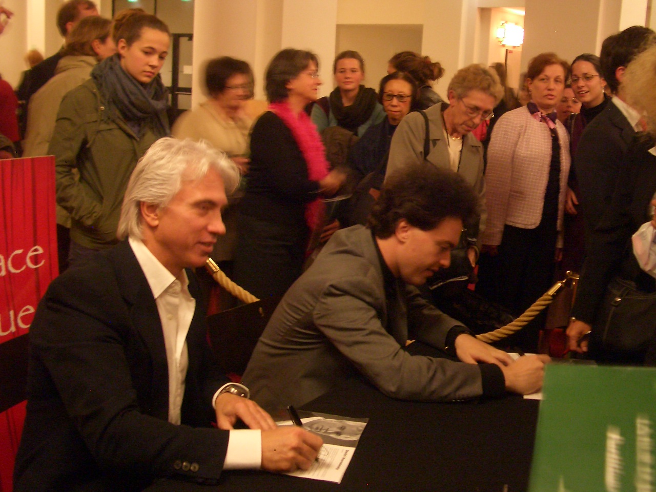 晩、サル・プレイエルで、バリトンのディミトリ・ホロストフスキーとピアノのエフゲニー・キーシンによるリサイタル。2人とも、レベルが高いことは言うまでもなく、エンターテイナーとしてクラシック音楽を超越していた。演奏会で感動することは多々あるが、普通のクラシック音楽の演奏会とは違った空気に刺激を受け、普段クラシック音楽の演奏会では、その厳かな雰囲気もあってか、サインをもらったり写真をとってもらったりすることはない私であるが、この時はサイン会の列に並び、写真を撮ってしまった。